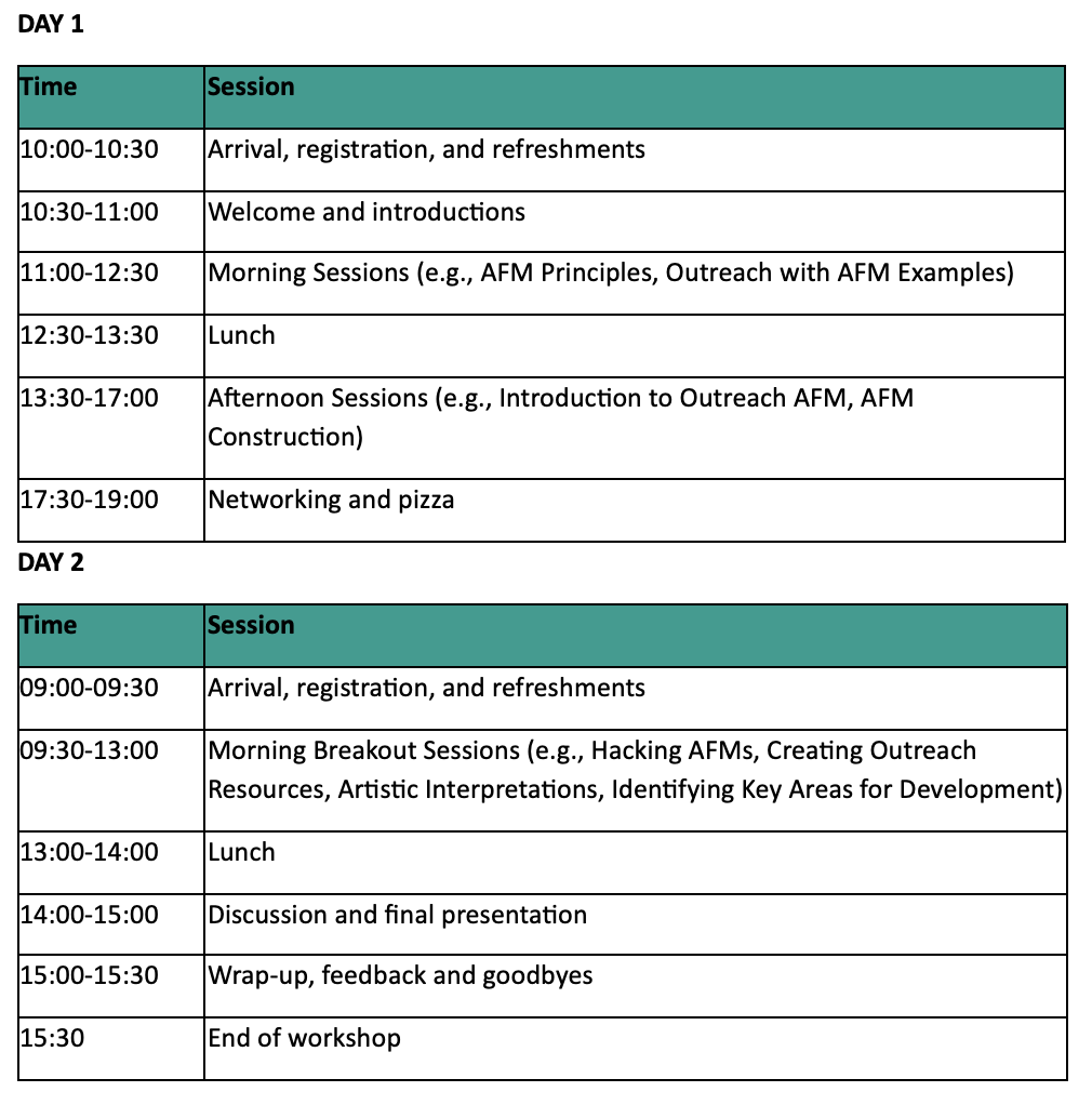 This workshop will bring together a community of AFM users who are enthusiastic about outreach and public engagement. Participants are encouraged to bring along their own ideas and ask questions to make the most of this collaborative experience!