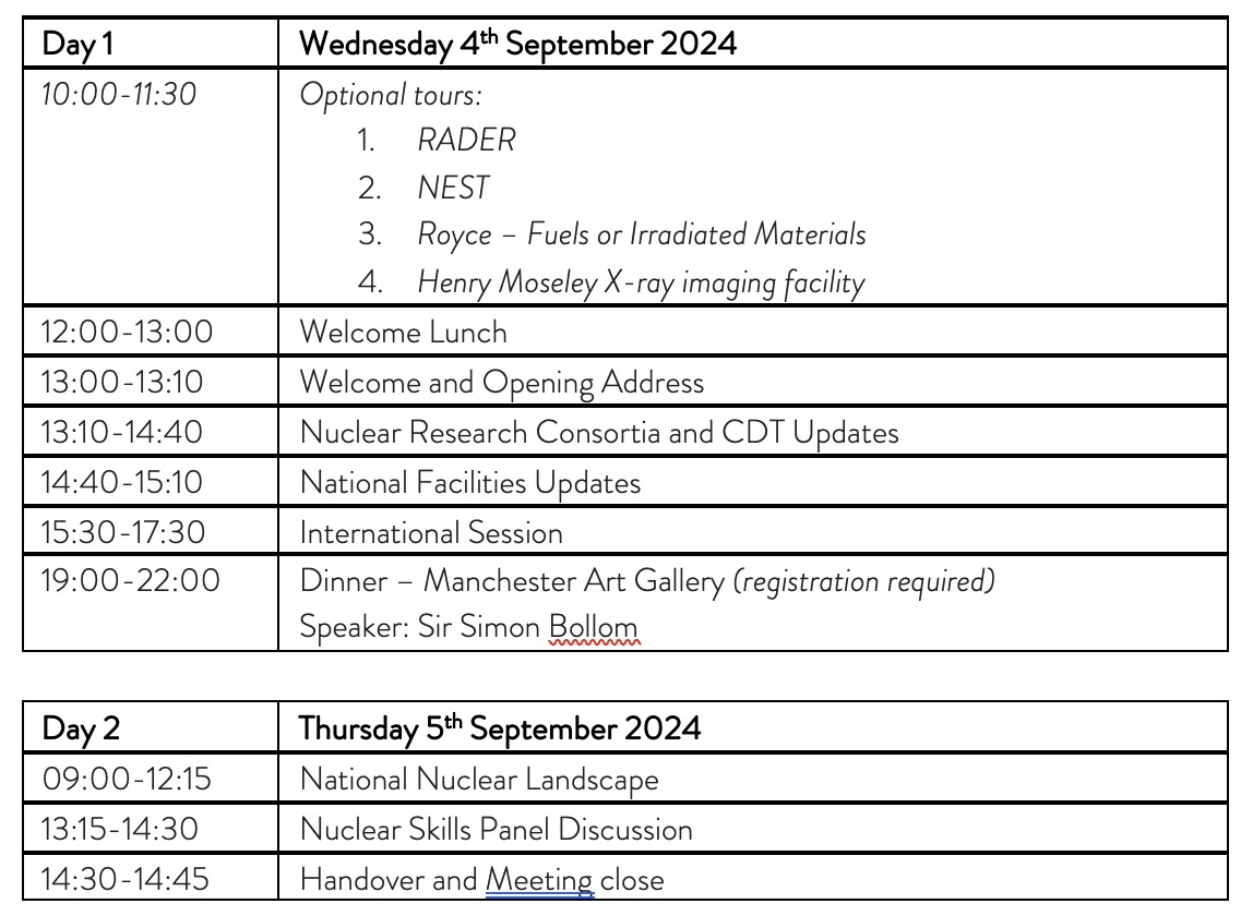The University of Manchester will host the 2024 Nuclear Academics Discussion Meeting.