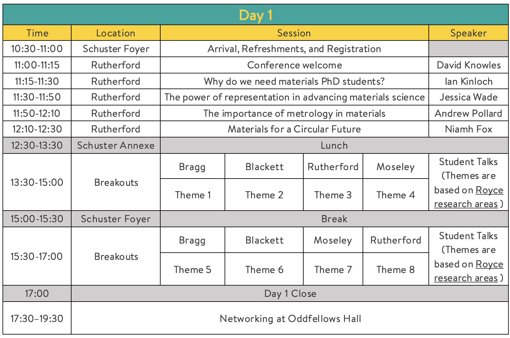 Taking place at The University of Manchester, the conference offers a welcoming and collaborative environment to connect with fellow students. It provides an opportunity to build links to materials science academics, personnel working at the Royce, and a wider network of professionals working across the advanced material research and innovation sector.