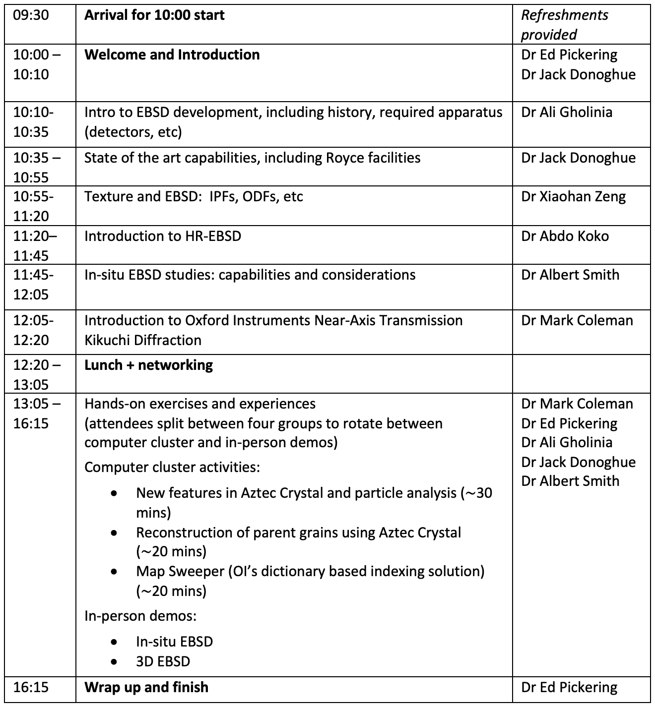 The focus will be on Oxford Instruments / Aztec capability.