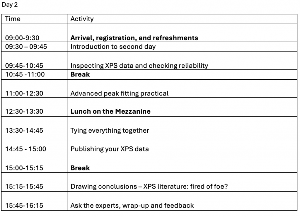 The workshop is aimed at PhD students, technical and research staff who are making use of the XPS facilities on campus to generate data in support of their re-search.