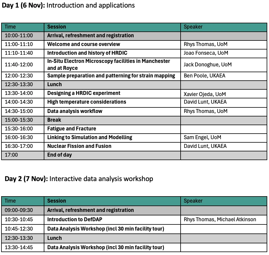 Delivered by the Henry Royce Institute for Advanced Materials, this course aligns with Royce’s mission to accelerate materials innovation through cutting-edge characterisation. It also leverages the University of Manchester’s internationally recognised expertise in HR-DIC, developed through years of pioneering work in nuclear, aerospace, and structural materials.